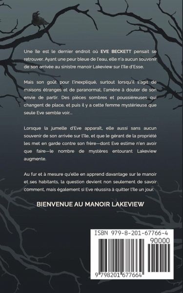 Une île est le dernier endroit où Eve Beckett pensait se retrouver. Ayant une peur bleue de l'eau, elle n'a aucun souvenir de son arrivée au sinistre manoir Lakeview sur l'île d'Esse. Mais son goût pour l'inexpliqué, surtout lorsqu'il s'agit de maisons étranges et de paranormal, l'amène à douter de son envie de partir. Des pièces sombres et poussiéreuses qui changent de place, et puis il y a cette femme mystérieuse que seule Eve semble voir... Lorsque la jumelle d'Eve apparaît, elle aussi sans aucun souvenir de son arrivée sur l'île, et que le gérant de la propriété les met en garde contre son frère-dont Eve estime n'en avoir que faire-le nombre de mystères entourant Lakeview augmente. Au fur et à mesure qu'elle en apprend davantage sur le manoir et ses habitants, la question devient non seulement de savoir comment, mais également si Eve réussira à quitter l'île un jour.
