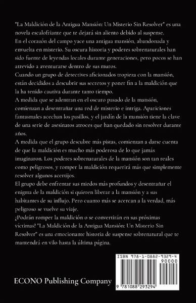 "La Maldición de la Antigua Mansión: Un Misterio Sin Resolver" es una novela escalofriante que te dejará sin aliento debido al suspense. En el corazón del campo yace una antigua mansión, abandonada y envuelta en misterio. Su oscura historia y poderes sobrenaturales han sido fuente de leyendas locales durante generaciones, pero pocos se han atrevido a aventurarse dentro de sus muros. Cuando un grupo de detectives aficionados tropieza con la mansión, están decididos a descubrir sus secretos y poner fin a la maldición que la ha tenido cautiva durante tanto tiempo. A medida que se adentran en el oscuro pasado de la mansión, comienzan a desentrañar una red de misterio e intriga. Apariciones fantasmales acechan los pasillos, y el jardín de la mansión tiene la clave de una serie de asesinatos atroces que han quedado sin resolver durante años. A medida que el grupo descubre más pistas, comienzan a darse cuenta de que la maldición es mucho más poderosa de lo que jamás imaginaron. Los poderes sobrenaturales de la mansión son tan reales como peligrosos, y romper la maldición requerirá más que simplemente resolver algunos acertijos. El grupo debe enfrentar sus miedos más profundos y desentrañar el enigma de la maldición si quieren liberar a la mansión y a sus habitantes de su influjo. Pero cuanto más se acercan a la verdad, más peligroso se vuelve su viaje. ¿Podrán romper la maldición o se convertirán en sus próximas víctimas? "La Maldición de la Antigua Mansión: Un Misterio Sin Resolver" es una emocionante historia de suspense sobrenatural que te mantendrá en vilo hasta la última página.