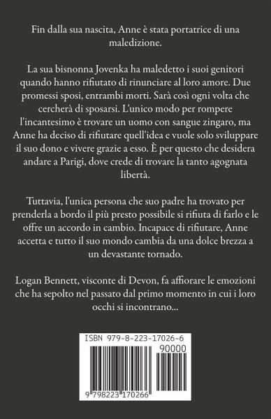 Fin dalla sua nascita, Anne è stata portatrice di una maledizione. La sua bisnonna Jovenka ha maledetto i suoi genitori quando hanno rifiutato di rinunciare al loro amore. Due promessi sposi, entrambi morti. Sarà così ogni volta che cercherà di sposarsi. L'unico modo per rompere l'incantesimo è trovare un uomo con sangue zingaro, ma Anne ha deciso di rifiutare quell'idea e vuole solo sviluppare il suo dono e vivere grazie a esso. È per questo che desidera andare a Parigi, dove crede di trovare la tanto agognata libertà. Tuttavia, l'unica persona che suo padre ha trovato per prenderla a bordo il più presto possibile si rifiuta di farlo e le offre un accordo in cambio. Incapace di rifiutare, Anne accetta e tutto il suo mondo cambia da una dolce brezza a un devastante tornado. Logan Bennett, visconte di Devon, fa affiorare le emozioni che ha sepolto nel passato dal primo momento in cui i loro occhi si incontrano...