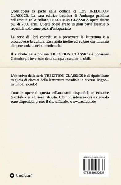 Quest opera fa parte della collana di libri TREDITION CLASSICS. La casa editrice tredition di Amburgo pubblica nell'ambito della collana TREDITION CLASSICS opere datate più di 2000 anni. Queste opere erano in gran parte esaurite o reperibili solo come pezzi d'antiquariato. La serie di libri contribuise a preservare la letteratura e a promuovere la cultura. Essa aiuta inoltre ad evitare che migliaia di opere cadano nel dimenticatoio. L'obiettivo della serie TREDITION CLASSICS è di ripubblicare migliaia di classici della letteratura mondiale in diverse lingue... in tutto il mondo!