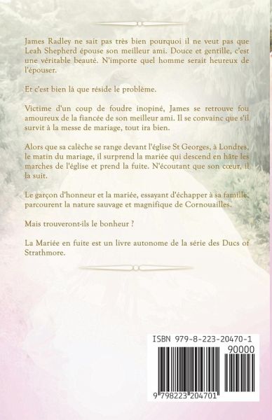 James Radley ne sait pas très bien pourquoi il ne veut pas que Leah Shepherd épouse son meilleur ami. Douce et gentille, c'est une véritable beauté. N'importe quel homme serait heureux de l'épouser. Et c'est bien là que réside le problème. Victime d'un coup de foudre inopiné, James se retrouve fou amoureux de la fiancée de son meilleur ami. Il se convainc que s'il survit à la messe de mariage, tout ira bien. Alors que sa calèche se range devant l'église St Georges, à Londres, le matin du mariage, il surprend la mariée qui descend en hâte les marches de l'église et prend la fuite. N'écoutant que son cœur, il la suit. Le garçon d'honneur et la mariée, essayant d'échapper à sa famille, parcourent la nature sauvage et magnifique de Cornouailles. Mais trouveront-ils le bonheur ?