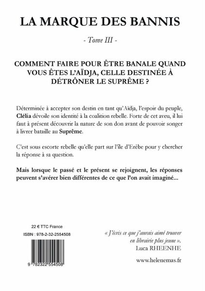 Déterminée à accepter son destin en tant qu'Aïdja, l'espoir du peuple, Clélia dévoile son identité à la coalition rebelle. Forte de cet aveu, il lui faut à présent découvrir la nature de son don avant de pouvoir songer à livrer bataille au Suprême. C'est sous escorte rebelle qu'elle part sur l'île d'Erèbe pour y chercher la réponse à sa question. Mais lorsque le passé et le présent se rejoignent, les réponses peuvent s'avérer bien différentes de ce que l'on avait imaginé...
