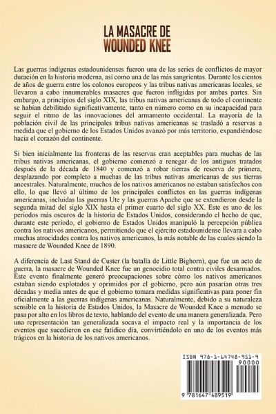 Si desea descubrir la fascinante historia de la masacre de Wounded Knee, continúe leyendo... La masacre de Wounded Knee generalmente se pasa por alto la importancia de los eventos que sucedieron en esen los libros de texto, hablando del evento de manera generalizada. Pero una representación tan generalizada socava el impacto real ye fatídico día, convirtiéndolo en uno de los eventos más trágicos en la historia de los nativos americanos. Para establecer los hechos de lo ocurrido, la mayoría de los detalles que se toman en cuenta en este libro al analizar y discutir los hechos de la Masacre de Wounded Knee se toman de los registros de los estadounidenses participantes de la guerra, así como de los registros militares de la investigación de lo sucedido y posterior juicio de uno de los participantes de la masacre. En este libro, nuestro objetivo es proporcionar al lector una mirada más profunda a los factores y actores principales que jugaron un papel en la Masacre de Wounded Knee, así como la importancia de sus secuelas. En La masacre de Wounded Knee: Una Guía Fascinante de la Batalla de Wounded Knee y su Impacto en los Nativos Americanos después del Enfrentamiento Final entre las Tropas Federales y los Sioux, descubrirás temas como:Una Breve Introducción de la Tribu Lakota y el Movimiento de la Danza de los Espíritus Una Breve Descripción de la Relación entre el Gobierno de los Estados Unidos y la Población Nativa de América Una Breve Descripción de los Protagonistas Clave de la Masacre de Wounded Knee Preludio de la Masacre de Wounded Knee La Masacre de Wounded Knee y la Verdad detrás de los Hechos La Investigación Militar de la Masacre de Wounded Knee y el Debate de la Medalla de Honor ¡Y mucho, mucho más! ¡Obtenga ahora este libro para aprender más sobre la masacre de Wounded Knee!