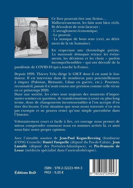 En respectant une chronologie précise, La mascarade démasquée retrace les événements, les décisions, les choix, parfois incompréhensibles, qui ont découlé de la pandémie de COVID-19 qui a touché la France.