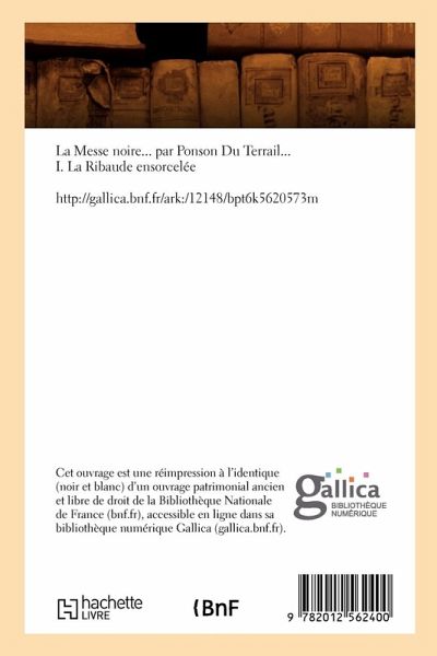La Messe noire... par Ponson Du Terrail... I. La Ribaude ensorceleeDate de l'edition originale : 1869Ce livre est la reproduction fidele d'une oeuvre publiee avant 1920 et fait partie d'une collection de livres reimprimes a la demande editee par Hachette Livre, dans le cadre d'un partenariat avec la Bibliotheque nationale de France, offrant l'opportunite d'acceder a des ouvrages anciens et souvent rares issus des fonds patrimoniaux de la BnF.Les oeuvres faisant partie de cette collection ont ete numerisees par la BnF et sont presentes sur Gallica, sa bibliotheque numerique.En entreprenant de redonner vie a ces ouvrages au travers d'une collection de livres reimprimes a la demande, nous leur donnons la possibilite de rencontrer un public elargi et participons a la transmission de connaissances et de savoirs parfois difficilement accessibles.Nous avons cherche a concilier la reproduction fidele d'un livre ancien a partir de sa version numerisee avec le souci d'un confort de lecture optimal. Nous esperons que les ouvrages de cette nouvelle collection vous apporteront entiere satisfaction.Pour plus d'informations, rendez-vous sur www.hachettebnf.frhttp://gallica.bnf.fr/ark:/12148/bpt6k5620573m