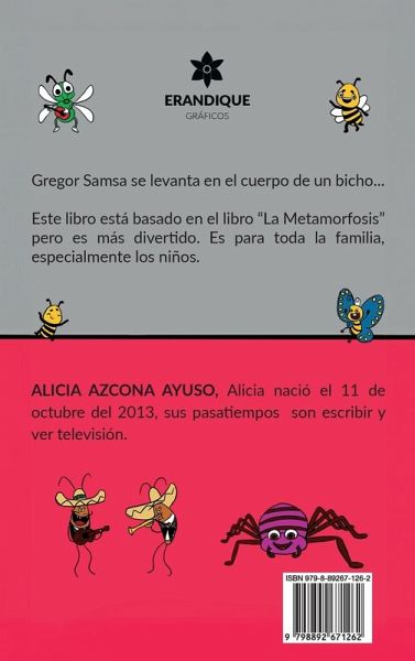 Gregor Samsa se levanta en el cuerpo de un bicho... Este libro es basado en el libro "La Metamorfosis" pero es más divertido.Es para toda la familia, especialmente los niños