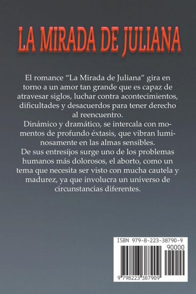 El romance "La Mirada de Juliana" gira en torno a un amor tan grande que es capaz de atravesar siglos, luchar contra acontecimientos, dificultades y desacuerdos para tener derecho al reencuentro. Dinámico y dramático, se intercala con momentos de profundo éxtasis, que vibran luminosamente en las almas sensibles. De sus entresijos surge uno de los problemas humanos más dolorosos, el aborto, como un tema que necesita ser visto con mucha cautela y madurez, ya que involucra un universo de circunstancias diferentes.