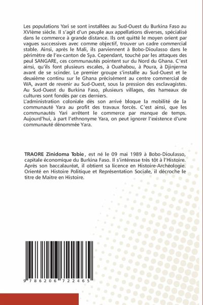 Les populations Yari se sont installées au Sud-Ouest du Burkina Faso au XVIème siècle. Il s'agit d'un peuple aux appellations diverses, spécialisé dans le commerce à grande distance. Ils ont quitté le moyen orient par vagues successives avec comme objectif, trouver un cadre commercial stable. Ainsi, après le Mali, ils parviennent à Bobo-Dioulasso dans le périmètre de l'ex-canton de Sya. Cependant, touché par les attaques des peul SANGARE, ces communautés pointent sur du Nord du Ghana. C'est ainsi, qu'ils font plusieurs escales, à Ouahabou, à Poura, à Djinjerma avant de se scinder. Le premier groupe s'installe au Sud-Ouest et le deuxième continu sur le Ghana précisément au centre commercial de WA, avant de revenir au Sud-Ouest, sous la pression des esclavagistes. Au Sud-Ouest du Burkina Faso, plusieurs villages, des hameaux de cultures sont fondés par ces derniers.L'administration coloniale dès son arrivé bloque la mobilité de la communauté Yara au profit des travaux forcés. C'est ainsi, que les communautés Yari arrêtent le commerce par manque de temps. Aujourd'hui, à part l'ethnonyme Yara, on peut ignorer l'existence d'une communauté dénommée Yara.