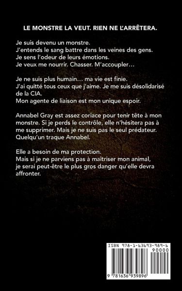 LE MONSTRE LA VEUT. RIEN NE L'ARRÊTERA. Je suis devenu un monstre. J'entends le sang battre dans les veines des gens. Je sens l'odeur de leurs émotions. Je veux me nourrir. Chasser. M'accoupler... Je ne suis plus humain... ma vie est finie. J'ai quitté tous ceux que j'aime. Je me suis désolidarisé de la CIA. Mon agente de liaison est mon unique espoir. Annabel Gray est assez coriace pour tenir tête à mon monstre. Si je perds le contrôle, elle n'hésitera pas à me supprimer. Mais je ne suis pas le seul prédateur. Quelqu'un traque Annabel. Elle a besoin de ma protection. Mais si je ne parviens pas à maîtriser mon animal, je serai peut-être le plus gros danger qu'elle devra affronter.