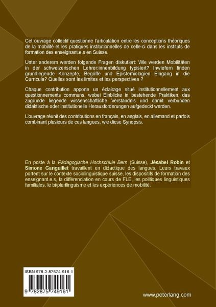 Cet ouvrage collectif questionne l'articulation entre les conceptions théoriques de la mobilité et les pratiques institutionnelles de celle-ci dans les instituts de formation des enseignant.e.s en Suisse.
