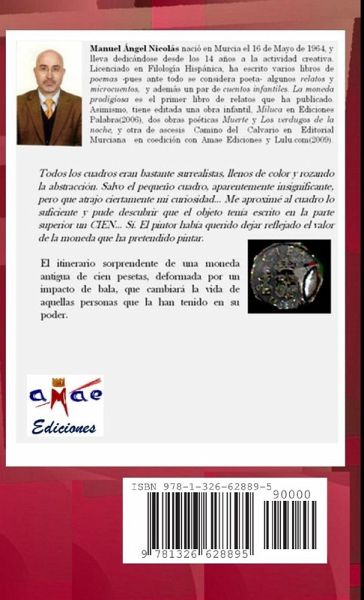 Todos los cuadros eran bastante surrealistas, llenos de color y rozando la abstracción. Salvo el pequeño cuadro, aparentemente insignificante, pero que atrajo ciertamente mi curiosidad... Me aproximé al cuadro lo suficiente y pude descubrir que el objeto tenía escrito en la parte superior un CIEN... Sí. El pintor había querido dejar reflejado el valor de la moneda que ha pretendido pintar. El itinerario sorprendente de una moneda antigua de cien pesetas, deformada por un impacto de bala, que cambiará la vida de aquellas personas que la han tenido en su poder.