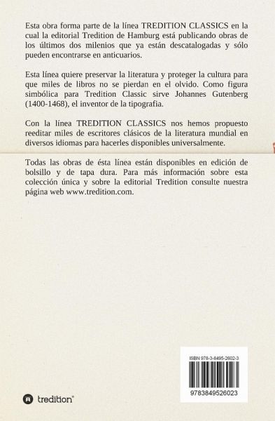Esta obra forma parte de la línea TREDITION CLASSICS en la cual la editorial tredition de Hamburgo está publicando obras de los últimos dos milenios que ya están descatalogadas y sólo pueden encontrarse en anticuarios. Esta línea quiere preservar la literatura y proteger la cultura para que miles de libros no se pierdan en el olvido. Con la línea TREDITION CLASSICS nos hemos propuesto reeditar miles de escritores clásicos de la literatura mundial en diversos idiomas para hacerles disponibles universalmente.
