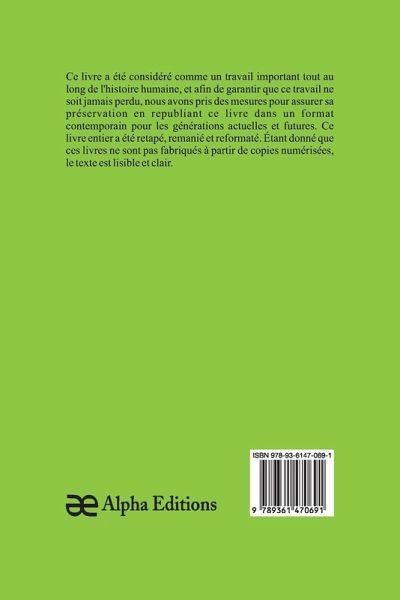 La mort de Philæ, un livre classique, a été considéré comme important tout au long de l'histoire de l'humanité, et pour que cet ouvrage ne soit jamais oublié, chez Alpha Editions, nous avons fait des efforts pour sa préservation en rééditant ce livre dans un format moderne pour les générations présentes et futures. Tout ce livre a été reformaté, retapé et conçu. Ces livres ne sont pas constitués de copies numérisées de leur ¿uvre originale et le texte est donc clair et lisible.
