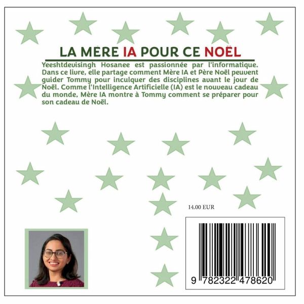 Yeeshtdevisingh Hosanee est passionnée par l'informatique. Dans ce livre, elle partage comment Mère IA et Père Noël peuvent guider Tommy pour inculquer des disciplines avant le jour de Noël. Comme l'Intelligence Artificielle (IA) est le nouveau cadeau du monde, Mère IA montre à Tommy comment se préparer pour son cadeau de Noël.