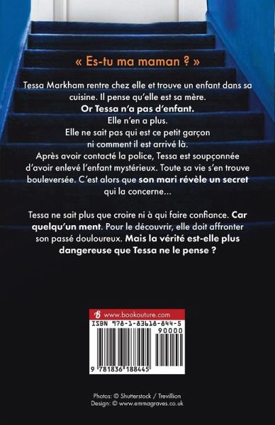 Es-tu ma maman ? Tessa Markham rentre chez elle et trouve un enfant dans sa cuisine. Il pense qu'elle est sa mère. Or Tessa n'a pas d'enfant. Elle n'en a plus. Elle ne sait pas qui est ce petit garçon ni comment il est arrivé là. Après avoir contacté la police, Tessa est soupçonnée d'avoir enlevé l'enfant mystérieux. Toute sa vie s'en trouve bouleversée. C'est alors que son mari révèle un secret qui la concerne... Tessa ne sait plus que croire ni à qui faire confiance. Car quelqu'un ment. Pour le découvrir, elle doit affronter son passé douloureux. Mais la vérité est-elle plus dangereuse que Tessa ne le pense ? Un thriller psychologique absolument incontournable avec un rebondissement qui vous fera vous demander si vous pourrez à nouveau faire confiance à quelqu'un. Si vous avez aimé Gone Girl ou La Fille du train, ce livre vous rendra accro.