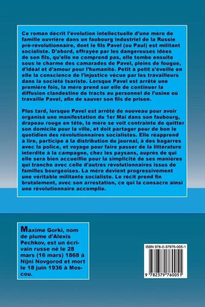 Ce roman décrit l'évolution intellectuelle d'une mère de famille ouvrière dans un faubourg industriel de la Russie pré-révolutionnaire, dont le fils Pavel (ou Paul) est militant socialiste. D'abord, effrayée par les dangereuses idées de son fils, qu'elle ne comprend pas, elle tombe ensuite sous le charme des camarades de Pavel, pleins de fougue, d'idéal et d'amour pour l'humanité. Petit à petit s'éveille en elle la conscience de l'injustice vécue par les travailleurs dans la société tsariste. Lorsque Pavel est arrêté une première fois, la mère prend sur elle de continuer la diffusion clandestine de tracts au personnel de l'usine où travaille Pavel, afin de sauver son fils de prison. Plus tard, lorsque Pavel est arrêté de nouveau pour avoir organisé une manifestation du 1er Mai dans son faubourg, drapeau rouge en tête, la mère se voit contrainte de quitter son domicile pour la ville, et doit partager pour de bon le quotidien des révolutionnaires socialistes. Elle réapprend à lire, participe à la distribution du journal, à des bagarres avec la police, et voyage pour faire passer de la littérature interdite à la campagne, chez les paysans, auprès de qui elle sera bien accueillie pour la simplicité de ses manières qui tranche avec celle d'autres révolutionnaires issus de familles bourgeoises. La mère devient progressivement une véritable militante socialiste. Le récit prend fin brutalement, avec son arrestation, ce qui la consacre ainsi une révolutionnaire accomplie.