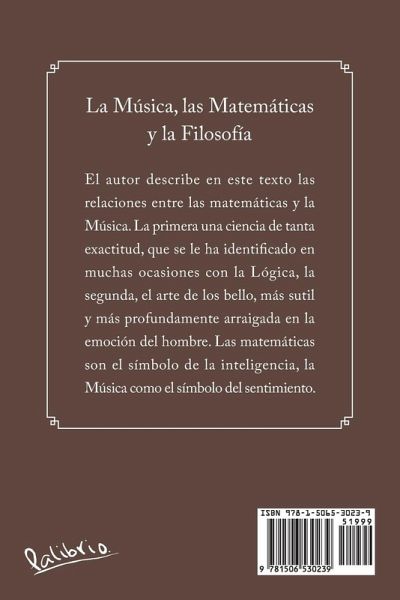 El autor describe en este texto las relaciones entre las matemáticas y la Música. La primera una ciencia de tanta exactitud, que se le ha identificado en muchas ocasiones con la Lógica, la segunda, el arte de los bello, más sutil y más profundamente arraigada en la emoción del hombre. Las matemáticas son el símbolo de la inteligencia, la Música como el símbolo del sentimiento.