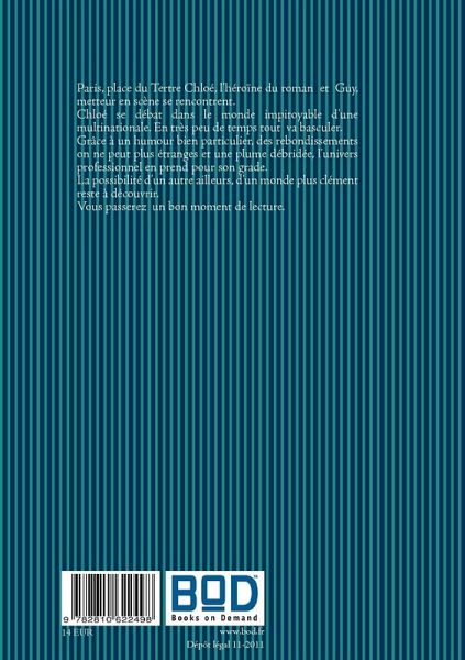 Paris, place du Tertre Chloé, l'héroïne du roman et Guy, metteur en scène se rencontrent.Chloé se débat dans le monde impitoyable du travail. En très peu de temps tout va basculer.Grâce à un humour bien particulier, des rebondissements on ne peut plus étranges et une plume débridée, l'univers professionnel en prend pour son grade.La possibilité d'un autre ailleurs, d'un monde plus clément reste à découvrir.Vous passerez un bon moment de lecture.