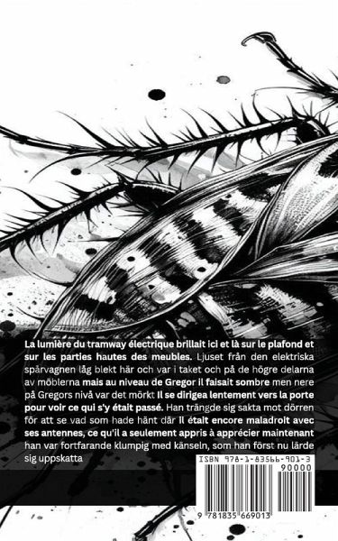 La lumière du tramway électrique brillait ici et là sur le plafond et sur les parties hautes des meubles. Ljuset från den elektriska spårvagnen låg blekt här och var i taket och på de högre delarna av möblerna mais au niveau de Gregor il faisait sombre men nere på Gregors nivå var det mörkt Il se dirigea lentement vers la porte pour voir ce qui s'y était passé. Han trängde sig sakta mot dörren för att se vad som hade hänt där il était encore maladroit avec ses antennes, ce qu'il a seulement appris à apprécier maintenant han var fortfarande klumpig med känseln, som han först nu lärde sig uppskatta Son côté gauche semblait avoir une longue cicatrice désagréablement serrée. Hans vänstra sida verkade ha ett långt, obehagligt tätt ärr et il a dû littéralement boiter sur ses deux rangées de jambes och han var tvungen att bokstavligen halta på sina två rader ben Par ailleurs, une des jambes avait été sérieusement blessée lors des incidents du matin. Ett av benen hade för övrigt skadats allvarligt under morgonens tillbud c'était presque un miracle qu'une seule de ses jambes ait été blessée det var nästan ett mirakel att bara ett av hans ben skadades et il traîna sa jambe sans vie och han släpade sitt ben livlöst Ce n'est qu'une fois arrivé à la porte qu'il réalisa ce qui l'avait réellement attiré là. Först när han kom fram till dörren insåg han vad som faktiskt hade lockat dit honom c'était l'odeur de quelque chose de comestible qui l'avait attiré là det var lukten av något ätbart som hade lockat dit honom