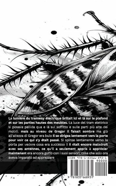 La lumière du tramway électrique brillait ici et là sur le plafond et sur les parties hautes des meubles. La luce del tram elettrico si posava pallida qua e là sul soffitto e sulle parti più alte dei mobili. mais au niveau de Gregor il faisait sombre ma giù all'altezza di Gregor era buio Il se dirigea lentement vers la porte pour voir ce qui s'y était passé. Si spinse lentamente verso la porta per vedere cosa era successo lì il était encore maladroit avec ses antennes, ce qu'il a seulement appris à apprécier maintenant era ancora goffo con i suoi sensori, cosa che solo ora aveva imparato ad apprezzare Son côté gauche semblait avoir une longue cicatrice désagréablement serrée. Il suo lato sinistro sembrava avere una lunga e sgradevolmente stretta cicatrice et il a dû littéralement boiter sur ses deux rangées de jambes e doveva letteralmente zoppicare sulle sue due file di gambe Par ailleurs, une des jambes avait été sérieusement blessée lors des incidents du matin. Tra l'altro, una delle gambe era rimasta gravemente ferita durante gli incidenti della mattina. c'était presque un miracle qu'une seule de ses jambes ait été blessée era quasi un miracolo che solo una delle sue gambe fosse ferita et il traîna sa jambe sans vie e trascinava la gamba senza vita Ce n'est qu'une fois arrivé à la porte qu'il réalisa ce qui l'avait réellement attiré là. Solo quando arrivò alla porta si rese conto di cosa lo aveva effettivamente attirato lì c'était l'odeur de quelque chose de comestible qui l'avait attiré là era l'odore di qualcosa di commestibile che lo aveva attirato lì