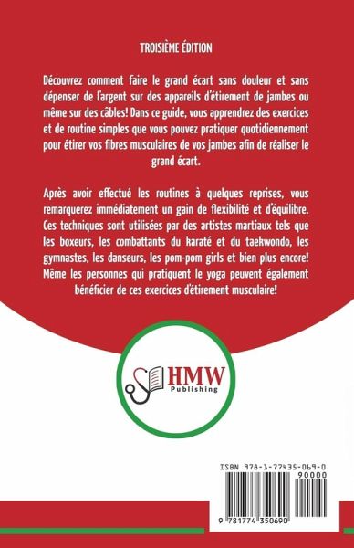 Découvrez comment faire le grand écart sans douleur et sans dépenser de l'argent sur des appareils d’étirement de jambes ou même sur des câbles! Dans ce guide, vous apprendrez des exercices et de routine simples que vous pouvez pratiquer quotidiennement pour étirer vos fibres musculaires de vos jambes afin de réaliser le grand écart. Après avoir effectué les routines à quelques reprises, vous remarquerez immédiatement un gain de flexibilité et d’équilibre. Ces techniques sont utilisées par des artistes martiaux tels que les boxeurs, les combattants du karaté et du taekwondo, les gymnastes, les danseurs, les pom-pom girls et bien plus encore! Même les personnes qui pratiquent le yoga peuvent également bénéficier de ces exercices d'étirement musculaire! Voici juste un aperçu de ce que vous allez bientôt apprendre... - Comment réaliser des fractionnements parfaits et le processus précis étape par étape pour y parvenir! - Vous découvrirez les meilleurs exercices, y compris des illustrations, pour vous montrer comment étirer vos fibres musculaires. - Les moyens les plus sûrs de vous étirer et d'éviter les blessures (cela seul n'a pas de prix). - Les erreurs d'exercice les plus courantes et les conseils utiles vous ont tous été révélés! - Vous obtiendrez une routine d'exercices complète à effectuer quotidiennement pour obtenir les fractionnements. - Et bien plus encore!