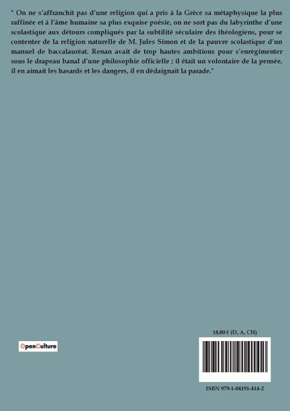 Dans "La méthode philosophique de Renan", Gabriel Séailles examine la pensée complexe et nuancée d'Ernest Renan, un intellectuel qui a cherché à concilier la science et la philosophie à travers un changement historique. Renan, insatisfait des philosophies traditionnelles et des systèmes métaphysiques abstraits, prône une philosophie ancrée dans l'érudition et l'histoire, où la vérité émerge de l'analyse des faits concrets et de leur évolution. Séailles souligne que Renan rejette la métaphysique abstraite, qu'il considère dépassée, et plaide pour une philosophie qui s'inspire des sciences…mehr