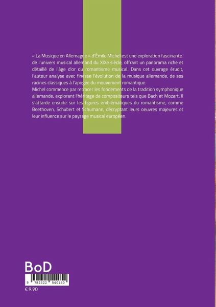 « La Musique en Allemagne » d'Émile Michel est une exploration fascinante de l'univers musical allemand du XIXe siècle, offrant un panorama riche et détaillé de l'âge d'or du romantisme musical. Dans cet ouvrage érudit, l'auteur analyse avec finesse l'évolution de la musique allemande, de ses racines classiques à l'apogée du mouvement romantique. Michel commence par retracer les fondements de la tradition symphonique allemande, explorant l'héritage de compositeurs tels que Bach et Mozart. Il s'attarde ensuite sur les figures emblématiques du romantisme, comme Beethoven, Schubert et Schumann, décryptant leurs oeuvres majeures et leur influence sur le paysage musical européen. L'auteur accorde une attention particulière à l'opéra allemand, genre en pleine mutation au XIXe siècle. Il analyse les innovations de Weber et Wagner, mettant en lumière leur rôle dans la redéfinition de l'art lyrique et leur impact sur l'esthétique musicale de leur temps. Ce livre s'inscrit naturellement dans les rayons d'histoire de la musique, de critique musicale et de biographies de compositeurs. Michel y démontre une connaissance approfondie de la musique allemande, offrant aux lecteurs une plongée captivante dans l'effervescence culturelle du XIXe siècle. « La Musique en Allemagne » n'est pas qu'une simple chronique historique. C'est une réflexion profonde sur l'essence du romantisme musical, ses aspirations et ses innovations. Michel explore les liens entre musique et philosophie, soulignant l'influence des courants de pensée allemands sur l'évolution de l'art sonore. L'ouvrage d'Émile Michel reste d'une étonnante actualité, offrant des clés précieuses pour comprendre l'héritage durable de la musique allemande du XIXe siècle sur la création contemporaine. Il constitue une référence incontournable pour les mélomanes, les musicologues et tous ceux qui s'intéressent à l'histoire culturelle européenne.