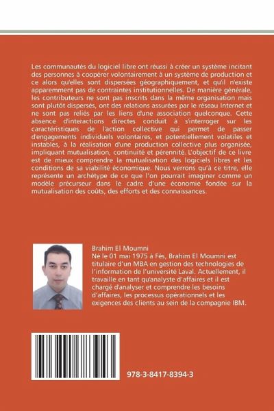 Né le 01 mai 1975 à Fès, Brahim El Moumni est titulaire d¿un MBA en gestion des technologies de l¿information de l¿université Laval. Actuellement, il travaille en tant qu'analyste d¿affaires et il est chargé d'analyser et comprendre les besoins d¿affaires, les processus opérationnels et les exigences des clients au sein de la compagnie IBM.