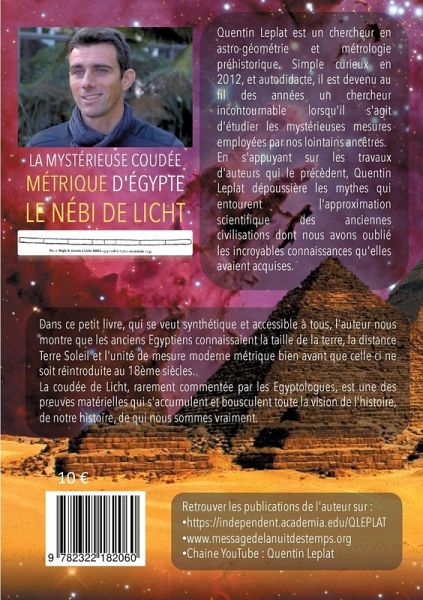 Dans ce petit livre, qui se veut synthétique et accessible à tous, l'auteur nous montre que les anciens Egyptiens connaissaient la taille de la terre, la distance Terre Soleil et l'unité de mesure moderne métrique bien avant que celle ci ne soit réintroduite au 18ème siècles.La coudée de Licht, rarement commentée par les Egyptologues, est une des preuves matérielles qui s'accumulent et bousculent toute la vision de l'histoire, de notre histoire, de qui nous sommes vraiment.