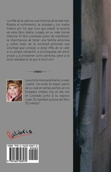 La niña de la calle es una historia de la vida real. Relata el sufrimiento, la soledad y los malos tratos por los que tuvo que pasar la autora de este libro, María Jurado, en su más tierna infancia. El libro pretende poner de manifiesto la importancia de tener una familia amorosa y, sobre todo, de la voluntad personal; esa voluntad que condujo a esta niña de la calle a su propia salvación, a la búsqueda del amor propio y a prosperar como persona, pese a la dura realidad en la que le tocó vivir.