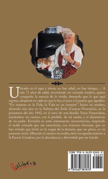 Ubicada en el aquí y ahora, no hay edad, no hay tiempo.... A mis 71 anos de edad, recorriendo mi nómada sendero, quiero compartir, la esencia de lo vivido, deseando que lo que aquí expreso, despierte en cada ser que lo lea, el amor y la pasión que significa. "Un instante en la Vida, la Vida en un instante". Inicio mi sendero, abriendo mis ojos en la Sultana del Ávila (Caracas-Venezuela), en la primavera del ano 1.942, en el seno de una familia Vasco-Venezolana, iniciándose mi camino, con la perdida de mi madre, y el alejamiento de mi padre. Envuelta en estas interesantes circunstancias, emprendo el andar nómada que me caracteriza, con intensas vivencias, que no han evitado que levite en la magia de la fantasía, que me plena, en mi presente otoño. Mirando el camino recorrido, elevo mi agradecimiento a la Fuente Creadora, por la abundancia y diversidad que me brindo