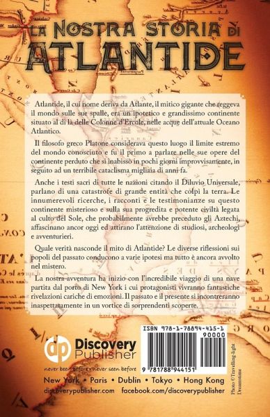 Atlantide, il cui nome deriva da Atlante, il mitico gigante che reggeva il mondo sulle sue spalle, era un ipotetico e grandissimo continente situato al di là delle Colonne d'Ercole, nelle acque dell'attuale Oceano Atlantico. Il filosofo greco Platone considerava questo luogo il limite estremo del mondo conosciuto e fu il primo a parlare nelle sue opere del continente perduto che si inabissò in pochi giorni improvvisamente, in seguito ad un terribile cataclisma migliaia di anni fa. Anche i testi sacri di tutte le nazioni citando il Diluvio Universale, parlano di una catastrofe di grande entità che colpì la terra. Le innumerevoli ricerche, i racconti e le testimonianze su questo continente misterioso e sulla sua progredita e potente civiltà legata al culto del Sole, che probabilmente avrebbe preceduto gli Aztechi, affascinano ancor oggi ed attirano l'attenzione di studiosi, archeologi e avventurieri. Quale verità nasconde il mito di Atlantide? Le diverse riflessioni sui popoli del passato conducono a varie ipotesi ma tutto è ancora avvolto nel mistero. La nostra avventura ha inizio con l'incredibile viaggio di una nave partita dal porto di New York i cui protagonisti vivranno fantastiche rivelazioni cariche di emozioni. Il passato e il presente si incontreranno inaspettatamente in un vortice di sorprendenti scoperte.