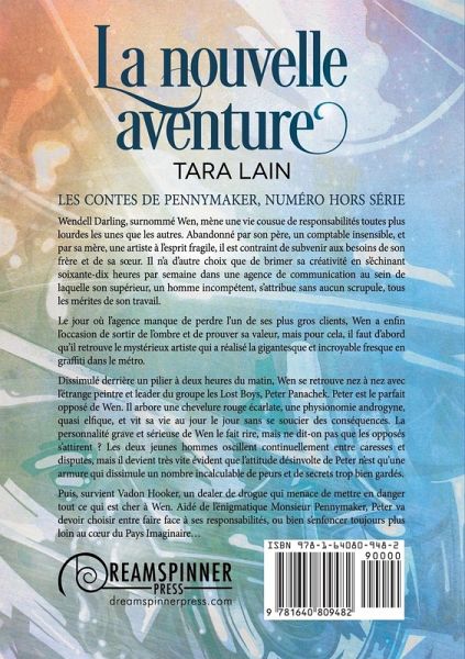 Les contes de Pennymaker, numéro hors série Wendell Darling, surnommé Wen, mène une vie cousue de responsabilités toutes plus lourdes les unes que les autres. Abandonné par son père, un comptable insensible, et par sa mère, une artiste à l'esprit fragile, il est contraint de subvenir aux besoins de son frère et de sa sœur. Il n'a d'autre choix que de brimer sa créativité en s'échinant soixante-dix heures par semaine dans une agence de communication au sein de laquelle son supérieur, un homme incompétent, s'attribue sans aucun scrupule, tous les mérites de son travail. Le jour où l'agence manque de perdre l'un de ses plus gros clients, Wen a enfin l'occasion de sortir de l'ombre et de prouver sa valeur, mais pour cela, il faut d'abord qu'il retrouve le mystérieux artiste qui a réalisé la gigantesque et incroyable fresque en graffiti dans le métro. Dissimulé derrière un pilier à deux heures du matin, Wen se retrouve nez à nez avec l'étrange peintre et leader du groupe les Lost Boys, Peter Panachek. Peter est le parfait opposé de Wen. Il arbore une chevelure rouge écarlate, une physionomie androgyne, quasi elfique, et vit sa vie au jour le jour sans se soucier des conséquences. La personnalité grave et sérieuse de Wen le fait rire, mais ne dit-on pas que les opposés s'attirent ? Les deux jeunes hommes oscillent continuellement entre caresses et disputes, mais il devient très vite évident que l'attitude désinvolte de Peter n'est qu'une armure qui dissimule un nombre incalculable de peurs et de secrets trop bien gardés. Puis, survient Vadon Hooker, un dealer de drogue qui menace de mettre en danger tout ce qui est cher à Wen. Aidé de l'énigmatique Monsieur Pennymaker, Peter va devoir choisir entre faire face à ses responsabilités, ou bien s'enfoncer toujours plus loin au cœur du Pays Imaginaire…