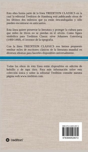 Esta obra (libro de tapa dura) forma parte de la línea TREDITION CLASSICS en la cual la editorial tredition de Hamburgo está publicando obras de los últimos dos milenios que ya están descatalogadas y sólo pueden encontrarse en anticuarios. Esta línea quiere preservar la literatura y proteger la cultura para que miles de libros no se pierdan en el olvido. Con la línea TREDITION CLASSICS nos hemos propuesto reeditar miles de escritores clásicos de la literatura mundial en diversos idiomas para hacerles disponibles universalmente.