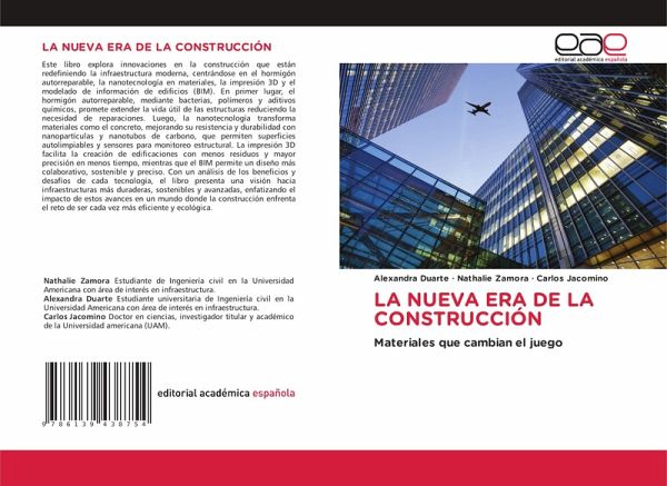 Este libro explora innovaciones en la construcción que están redefiniendo la infraestructura moderna, centrándose en el hormigón autorreparable, la nanotecnología en materiales, la impresión 3D y el modelado de información de edificios (BIM). En primer lugar, el hormigón autorreparable, mediante bacterias, polímeros y aditivos químicos, promete extender la vida útil de las estructuras reduciendo la necesidad de reparaciones. Luego, la nanotecnología transforma materiales como el concreto, mejorando su resistencia y durabilidad con nanopartículas y nanotubos de carbono, que permiten superficies autolimpiables y sensores para monitoreo estructural. La impresión 3D facilita la creación de edificaciones con menos residuos y mayor precisión en menos tiempo, mientras que el BIM permite un diseño más colaborativo, sostenible y preciso. Con un análisis de los beneficios y desafíos de cada tecnología, el libro presenta una visión hacia infraestructuras más duraderas, sostenibles y avanzadas, enfatizando el impacto de estos avances en un mundo donde la construcción enfrenta el reto de ser cada vez más eficiente y ecológica.