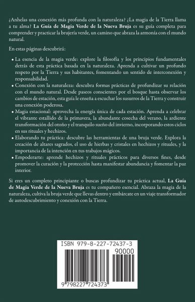 ¿Anhelas una conexión más profunda con la naturaleza? ¿La magia de la Tierra llama a tu alma? La Guía de Magia Verde de la Nueva Bruja es su guía completa para comprender y practicar la brujería verde, un camino que abraza la armonía con el mundo natural. En estas páginas descubrirá:La esencia de la magia verde: explore la filosofía y los principios fundamentales detrás de esta práctica basada en la naturaleza. Aprenda a cultivar un profundo respeto por la Tierra y sus habitantes, fomentando un sentido de interconexión y responsabilidad. Conexión con la naturaleza: descubra formas prácticas de profundizar su relación con el mundo natural. Desde paseos conscientes por el bosque hasta observar los cambios de estación, esta guía le enseña a escuchar los susurros de la Tierra y construir una conexión poderosa. Magia estacional: aprovecha la energía única de cada estación. Aprenda a celebrar el vibrante estallido de la primavera, la abundante cosecha del verano, la ardiente transformación del otoño y el tranquilo sueño del invierno, incorporando estos ciclos en sus rituales y hechizos. Elaborando tu práctica: descubre las herramientas de una bruja verde. Explora la creación de altares sagrados, el uso de hierbas y cristales en hechizos y rituales, y la importancia de la intención en tus trabajos mágicos. Empoderarte: aprende hechizos y rituales prácticos para diversos fines, desde promover la curación y la protección hasta manifestar abundancia y fomentar la paz interior. Si eres un completo principiante o buscas profundizar tu práctica actual, La Guía de Magia Verde de la Nueva Bruja es tu compañero esencial. Abraza la magia de la naturaleza, cultiva la bruja verde que llevas dentro y embárcate en un viaje transformador de autodescubrimiento y conexión con la Tierra.
