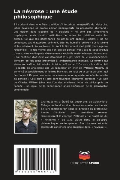 S'inscrivant dans une fière tradition d'interprètes imaginatifs de Nietzsche, Johns développe sa propre édition panpsychiste du philosophe allemand - une édition dans laquelle les « pulsions » ne sont pas simplement psychiques, mais plutôt constitutives de toutes les relations entre les entités. Ce que les philosophes du passé ont appelé « objets » ne se contentent pas d'attendre, poliment, que les humains arrivent sur la scène et les décrivent. Au contraire, ils sont le firmament d'où jaillit toute agence rationnelle - le fait même que l'on puisse penser n'est que le sous-produit d'une chaîne contingente d'événements évolutifs matériellement dépendants - qui continue d'assaillir constamment le sujet, voire de le marionnettiser, annulant de fait toute prétention à l'indépendance mentale. La femme qui sirote son café au lait a-t-elle choisi le café au lait ? Ou est-ce le café au lait - apporté en Angleterre par un rédacteur en chef de l'Atlantic Monthly et annoncé ostensiblement en lettres blanches en haut de la carte du café - qui l'a choisie ? De plus, comment sa consommation quotidienne affectera-t-elle sa pensée ? Cela aura-t-il des conséquences cognitives durables ? Le livre de Charles William Johns est l'un des meilleurs livres de philosophie de l'année - un joyau de la renaissance anglo-américaine de la philosophie continentale.