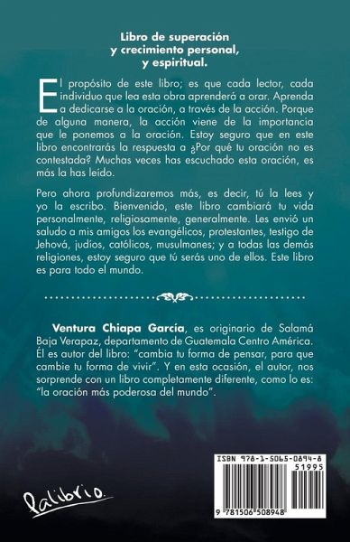 Libro de superación y crecimiento personal, y espiritual. El propósito de este libro; es que cada lector, cada individuo que lea esta obra aprenderá a orar. Aprenda a dedicarse a la oración, a través de la acción. Porque de alguna manera, la acción viene de la importancia que le ponemos a la oración. Estoy seguro que en este libro encontrarás la respuesta a ¿Por qué tu oración no es contestada? Muchas veces has escuchado esta oración, es más la has leído. Pero ahora profundizaremos más, es decir, tú la lees y yo la escribo. Bienvenido, este libro cambiará tu vida personalmente, religiosamente, generalmente. Les envió un saludo a mis amigos los evangélicos, protestantes, testigo de Jehová, judíos, católicos, musulmanes; y a todas las demás religiones, estoy seguro que tú serás uno de ellos. Este libro es para todo el mundo.