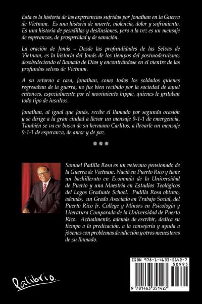 Esta es la historia de las experiencias sufridas por Jonathan en la Guerra de Vietnam. Es una historia de muerte, violencia, dolor y sufrimiento. Es una historia de pesadillas y desilusiones, pero a la vez es un mensaje de esperanzas, de prosperidad y de sanación. La oración de Jonás - Desde las profundidades de las Selvas de Vietnam, es la historia del Jonás de los tiempos del postmodernismo, desobedeciendo el llamado de Dios y encontrándose en el vientre de las profundas selvas de Vietnam. A su retorno a casa, Jonathan, como todos los soldados quienes regresaban de la guerra, no fue bien recibido por la sociedad de aquel entonces, especialmente por el movimiento hippie, quienes le gritaban todo tipo de insultos. Jonathan, al igual que Jonás, recibe el llamado por segunda ocasión y se dirige a la gran ciudad a llevar un mensaje 9-1-1 de emergencia. También se va en busca de su hermano Carlitos, a llevarle un mensaje 9-1-1 de esperanza, de amor y de paz.