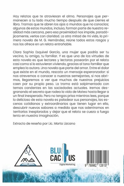 MUCHAS OPINIONES IMPORTANTES, ACÁ LES BRINDO ALGUNAS Relatos como este te atraviesan el alma. Sus personajes permanecerán a tu lado mucho tiempo después de cerrar el libro. Este es una trama que te abre los ojos a un tema muy discutido, pero desde una perspectiva diferente. Podría ser que este mundo distinto forma parte de tu realidad más cercana, pero esa proximidad a veces impide, paradójicamente, verlo con claridad y justicia. La otra mitad de mi vida, la primera novela de M. G. Hernández, reúne todos estos rasgos y nos los ofrece en un relato ciertamente muy posible y entrañable. M. Lizcano >Esta es, quizá, la historia de sueños inconclusos, los de José Tomás y Elvira, los padres de Clara; sueños que Clara consigue hacer realidad a través de Mateo, ahora sí hay que decirlo, el verdadero protagonista de esta historia. O, quizá, es la historia de Clara y el sorprendente giro que dio su vida al conocer por accidente a Mateo. O, tal vez, esta es la historia de Mateo, un ser especial que llegó por casualidad a la vida de Clara, en un lugar al que ella había llegado de casualidad. Es, entonces, ¿una historia de casualidades? Todas las vidas lo son, al menos en parte. Esta es, en definitiva y sin interrogantes, una historia de superación y bondad, de lucha y comprensión, de lágrimas alegres y tristes y de sonrisas tristes y alegres. La otra mitad de mi vida tiene muchos recovecos en su narración, pero por encima de todo es la historia del alma rota y reconstruida de un luchador incansable, Mateo, y del alma enérgica de Clara. Irene Muñoz >¿Qué sucedería si de pronto dos almas entrelazan su camino en busca de la felicidad? Esa es la interrogante que plantea la escritora María Guadalupe Hernández en su libro La otra mitad de mi vida, que combina el presente con los pasados tiempos aciagos de la Segunda Guerra Mundial. Clara y Mateo tendrán que enfrentarse a la maldad, ante las situaciones trágicas en las que se vieron implicados y luchar por el amor que sienten el uno por el otro. El libro refleja el esfuerzo de los seres humanos de aliviar el dolor y el sufrimiento, y aborda la inteligencia del hombre ante los dolores y los desencantos de la vida. Hernández, en su novela, critica el statu quo de la sociedad que define patrones de comportamiento y modos de expresión humana. "Desde que nosotros nacemos nos encasillan y nos meten en una jaula", expresó. Ejemplo de estas situaciones son los nombres con los que somos inscritos al nacer, nuestra disconformidad con nuestro género o las peleas que sostenemos con nuestros padres que contradicen el espíritu propio del hombre. "El límite de nosotros es el cielo, pero muchos no pueden romper esa barrera", agregó. Jose Vilar >"La otra mitad de mi vida" es una novela que nos deja con la esperanza de que pronto volveremos a encontrarnos con Clara y su vida. Una historia con toda una serie de conflictos personales y familiares que pueden desestabilizar, descarrilar, una vida común, pero Clara es una mujer hecha de acero. Clara puede ser por momentos calculadamente racional, o puede mostrarnos una faceta más personal y emocional; la riqueza de los matices en sus sentimientos le facilita la diversidad de relaciones que mantiene y nutre. Marcos G. Villasmil >Una novela realista que, toca muchos temas actuales de una forma honesta y respetuosa. La historia de Clara y Mateo no es la típica historia de amor, es la historia de dos personas que a través del amor, logran sanarse y redescubrirse. Es de fácil lectura, pero su narrativa puede sorprenderte al dar un cambio que para algunos puede ser sutil pero que tiene mucha profundidad. Cada personaje fue creado con mucho detalle y el relato es tan específico que te transporta a cada lugar que los protagonistas visitan. Es una novela moderna que disfrute