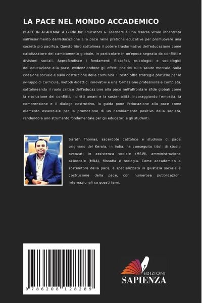PEACE IN ACADEMIA: A Guide for Educators & Learners è una risorsa vitale incentrata sull'inserimento dell'educazione alla pace nelle pratiche educative per promuovere una società più pacifica. Questo libro sottolinea il potere trasformativo dell'educazione come catalizzatore del cambiamento globale, in particolare in un'epoca segnata da conflitti e divisioni sociali. Approfondisce i fondamenti filosofici, psicologici e sociologici dell'educazione alla pace, evidenziandone gli effetti positivi sulla salute mentale, sulla coesione sociale e sulla costruzione della comunità. Il testo offre strategie pratiche per lo sviluppo di curricula, metodi didattici innovativi e una formazione professionale completa, sottolineando il ruolo critico dell'educazione alla pace nell'affrontare sfide globali come la risoluzione dei conflitti, i diritti umani e la sostenibilità. Incoraggiando l'empatia, la comprensione e il dialogo costruttivo, la guida pone l'educazione alla pace come elemento essenziale per la promozione di un cambiamento positivo della società, rendendola uno strumento fondamentale per gli educatori e gli studenti.