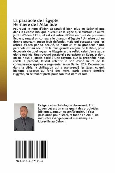 Pourquoi le nom d'Eden apparaît-il bien plus en Ezéchiel que dans la Genèse biblique ? Serait-ce le signe qu'il existait un autre jardin d'Eden ? Et quel est cet arbre d'Eden entouré de plusieurs fleuves, auquel on compare le pharaon d'Egypte ? Un arbre qui ne donne pourtant aucun fruit défendu, mais qui surpasse tous les arbres d'Eden par sa beauté, sa hauteur, et sa grandeur ? Une parabole est au coeur de la plus grande énigme de la Bible, pour découvrir de quel royaume l'Egypte est le reflet, celui d'une autre gloire oubliée. Une royauté aurait-elle pu exister en Eden, et dont on ne nous a jamais parlé ? Une royauté que la prophétie nous révèle à présent, faisant retentir le son d'une heure de la connaissance appelée à augmenter selon Daniel 12:4. Découvrons dans la bible, la civilisation qui a transcendé les âges, et qui, bienque disparue au fond des mers, parle encore derrière l'Egypte, en se tenant prête pour son tout dernier rôle.