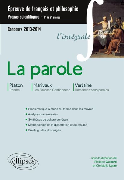 La collection ' l'intégrale ' propose, aux étudiants des CPGE scientifiques, un manuel complet pour une préparation efficace de l'épreuve de français et philosophie. Réalisé par des spécialistes et des enseignants en CPGE dans un esprit pédagogique, il vise à doter et enrichir le candidat de connaissances claires et essentielles pour aborder sereinement tout type d'épreuve. Il propose ainsi : ¿ Une approche problématisée du thème de la parole ¿ Une lecture approfondie et condensée des 3 oeuvres ¿ Des dialogues construits entre les oeuvres ¿ Des synthèses philosophiques et historiques sur la question ¿ Un élargissement sur le thème dans le langage et la littérature ¿ Une ouverture au monde symbolique et artistique ¿ Une méthodologie suivie de dissertations détaillées et de résumés