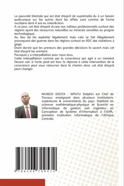 La pauvreté Mentale qui est état d'esprit de suprématie du à un besoin quelconque sur les autres dont les effets sont comme de l'arme nucléaire dont il eut eu interdiction.A ce jour, cet état d'esprit écrase nos milieux professionnels surtout des régions ayant des ressources naturelles ou minerais sensibles au progrès technologique.Au lieu de les exploiter légalement mais cela se fait illégalement provoquant des guerres dans les régions surtout en RDC des violations à gogo.Étant donné que les preneurs des grandes décisions le savent mais cet état d'esprit les animent.Pourquoi y a interpellation pour nous tous.Cette interpellation comme par la conscience qui agit à un moment faisant voir si l'acte posé est bon. la réponse à cette intervention de la conscience peut vous retourner dans le chemin donc cet état d'esprit peut changer.