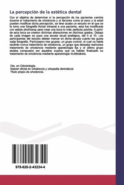 Con el objetivo de determinar si la percepción de los pacientes cambia durante el tratamiento de ortodoncia y si factores como el sexo y la edad pueden modificar dicha percepción, se llevo acabo un estudio en el que se le tomo una fotografía frontal intraoral a una paciente, esta fue modificada con adobe phothosop para crear una boca lo más perfecta posible. A partir de esta boca se crearon distintas alteraciones en distintos grados. Debajo de cada imagen se puso una escala visual analógica, del 0 al 10. Los participantes del estudio debían marcar en dicha escala cuanto les gusta cada fotografía. Participaron tres grupos; un grupo control, el cual no había recibido nunca tratamiento de ortodoncia, un grupo que deseaba realizarse tratamiento de ortodoncia mediante aparatología fija y el último grupo estaba compuesto por aquellos sujetos que ya habían finalizado su tratamiento de ortodoncia mediante aparatología multibrakets.