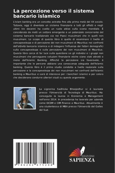 L'islam banking era un concetto astratto fino alla prima metà del XX secolo. Tuttavia, oggi è diventato un sistema finanziario a tutti gli effetti e negli ultimi tre decenni ha svolto un ruolo attivo sulla scena mondiale. È considerato da molti un settore emergente e un potenziale concorrente del sistema bancario tradizionale sia nei Paesi musulmani che in quelli non musulmani. Lo scopo di questo libro è quello di esaminare il livello di consapevolezza e di percezione dei non musulmani di Mauritius nei confronti dell'attività bancaria islamica e di indagare l'influenza dei fattori demografici sulla consapevolezza e sulla percezione dei non musulmani di Mauritius. Questo libro cerca di far luce sulla questione se gli individui e i gruppi non musulmani che perseguono soluzioni finanziarie etiche siano stati attratti o meno dall'Islamic Banking. Affinché la percezione sia favorevole, è importante che le persone abbiano una conoscenza adeguata dell'Islamic banking. Questo libro è il primo studio condotto a livello nazionale sulla percezione e la consapevolezza dei non musulmani nei confronti dell'Islamic banking a Mauritius e sarà di interesse per i banchieri islamici e per coloro che desiderano condurre ulteriori studi su questo argomento.