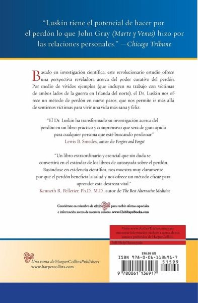 Basado en investigaci¿¿¿¿¿¿n cient¿¿¿¿¿¿fica, este revolucionario estudio ofrece una perspectiva reveladora acerca del poder curativo del perd¿¿¿¿¿¿n. Por medio de v¿¿¿¿¿¿vidos ejemplos (que incluyen su trabajo con v¿¿¿¿¿¿ctimas de ambos lados de la guerra en Irlanda del norte), el Dr. Luskin nos ofrece un m¿¿¿¿¿¿todo de perd¿¿¿¿¿¿n en nueve pasos, que nos permite ir m¿¿¿¿¿¿s all¿¿¿¿¿¿ de sentirnos v¿¿¿¿¿¿ctimas para vivir una vida m¿¿¿¿¿¿s sana y feliz.