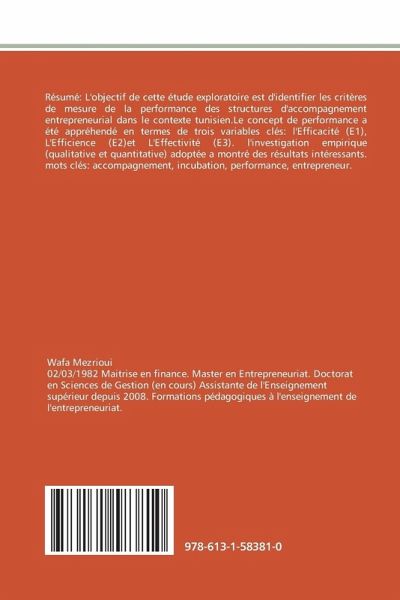 Résumé: L'objectif de cette étude exploratoire est d'identifier les critères de mesure de la performance des structures d'accompagnement entrepreneurial dans le contexte tunisien.Le concept de performance a été appréhendé en termes de trois variables clés: l'Efficacité (E1), L'Efficience (E2)et L'Effectivité (E3). l'investigation empirique (qualitative et quantitative) adoptée a montré des résultats intéressants. mots clés: accompagnement, incubation, performance, entrepreneur.