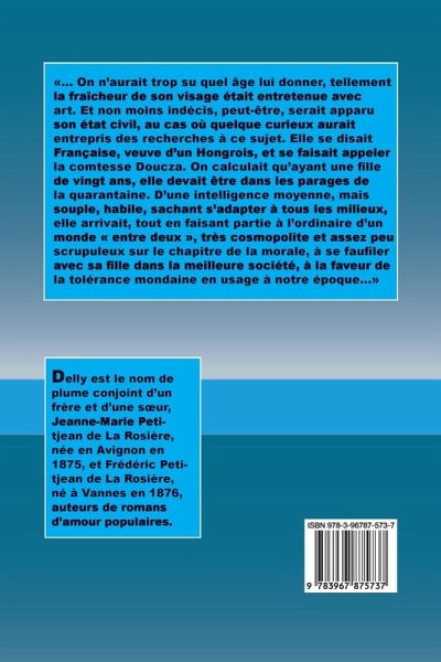 ... On n'aurait trop su quel âge lui donner, tellement la fraîcheur de son visage était entretenue avec art. Et non moins indécis, peut-être, serait apparu son état civil, au cas où quelque curieux aurait entrepris des recherches à ce sujet. Elle se disait Française, veuve d'un Hongrois, et se faisait appeler la comtesse Doucza. On calculait qu'ayant une fille de vingt ans, elle devait être dans les parages de la quarantaine. D'une intelligence moyenne, mais souple, habile, sachant s'adapter à tous les milieux, elle arrivait, tout en faisant partie à l'ordinaire d'un monde entre deux , très cosmopolite et assez peu scrupuleux sur le chapitre de la morale, à se faufiler avec sa fille dans la meilleure société, à la faveur de la tolérance mondaine en usage à notre époque...