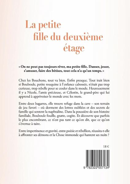 « On ne peut pas toujours rêver, ma petite fille. Danser, jouer, s'amuser, faire des bêtises, tout cela n'a qu'un temps. » Chez les Bouchons, tout va bien. Enfin presque. Tout irait bien si Bouboule, petite rouquine à l'enfance cabossée, n'était pas trop curieuse, trop rebelle pour se couler dans le moule. Heureusement il y a Nicole, l'amie précieuse, et Célestin, le grand-père qui lui apprend à apprivoiser le monde avec les mots. Entre deux bagarres, elle trouve refuge dans la cave - son terrain de jeu favori - où dorment des lettres oubliées et des secrets de famille qui sentent la naphtaline. Dans la poussière de son histoire familiale, Bouboule fouille, gratte, cogite. Et découvre que parfois le plus encombrant, ce n'est pas tant ce qu'on dit, que ce qu'on s'évertue à taire. Entre impertinence et gravité, entre poésie et rébellion, réussira-t-elle à affronter ses démons et la Chose immonde qui hantent ses nuits ?